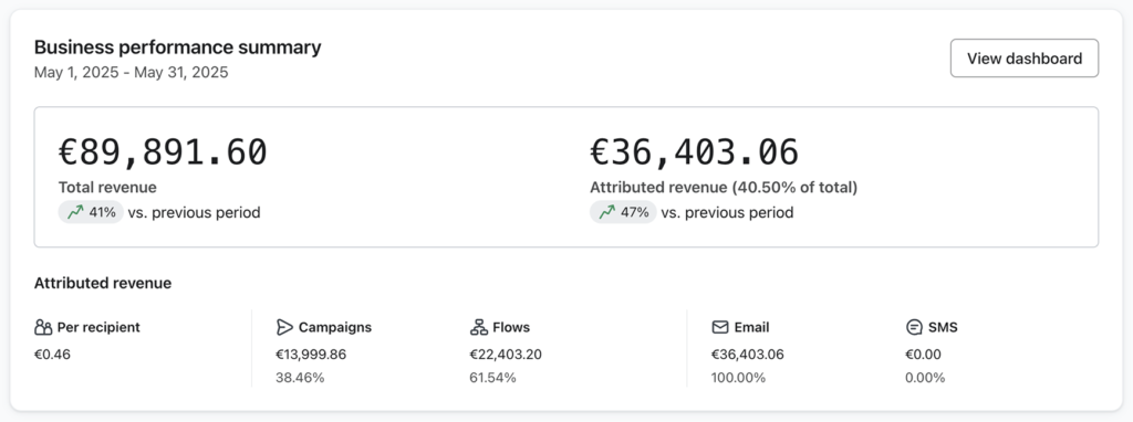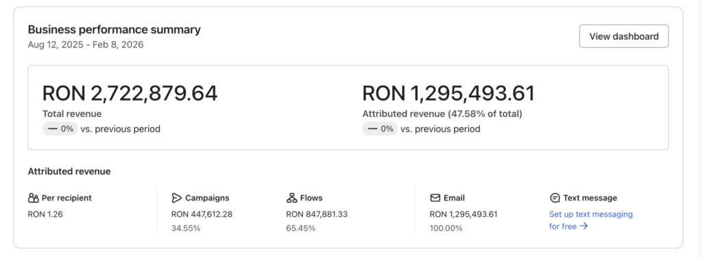 "Personally, I'm strictly interested in ROI, which is extraordinary. I don't know exactly how much I generated from the BF and Christmas campaigns, but i know that the cart abandonment and checkout flow is constantly printing. At the last check, I had 14k euros collected from it and the invoice was 240 euros for setup. 58x ROI in 4 months."